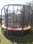 Этот батут я подарил своему сыну на день рождения. Прыгает он теперь на нем с большим удовольствием. Понравился материал прыжкового полотна- прыгучесть дает хорошую. Конструкция простая, поэтому со сборкой никаких проблем у меня не возникло.  Покупал в магазине Зона спорта. Ассортимент здесь большой. Выбрал этот из-за подходящего размера. С доставкой все четко.